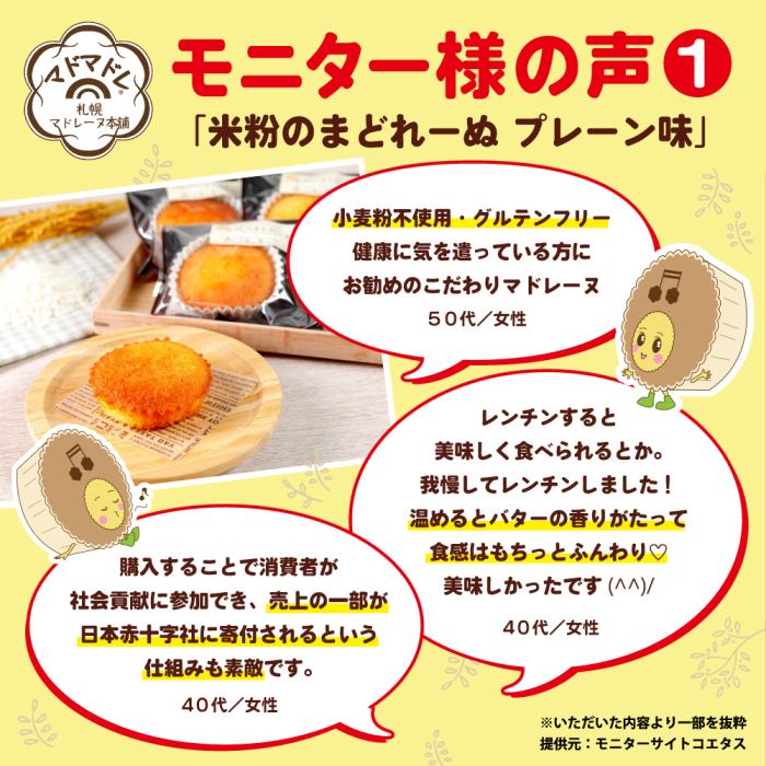 「美味しい」の先にある「安心」と「喜び」を。 札幌マドレーヌ本舗マドマドレの「米粉のまどれーぬ」は、素材選びから製法まで、一切の妥協を許さず作り上げた自慢の逸品です。